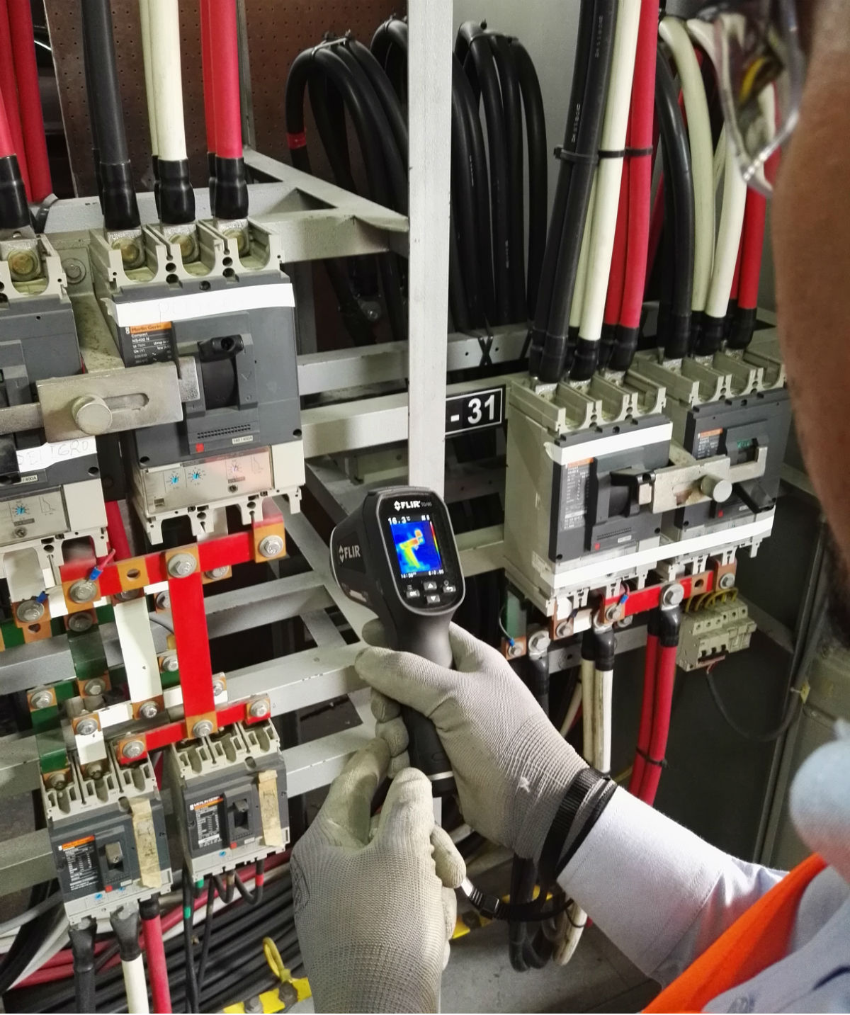 Además de ajustes y limpieza de conexiónes, se evalúan el estado de las conexiones, de los interruptores de maniobra y protección, la carga y el balance de los circuitos de alimentación, evaluación de puntos calientes, etc.